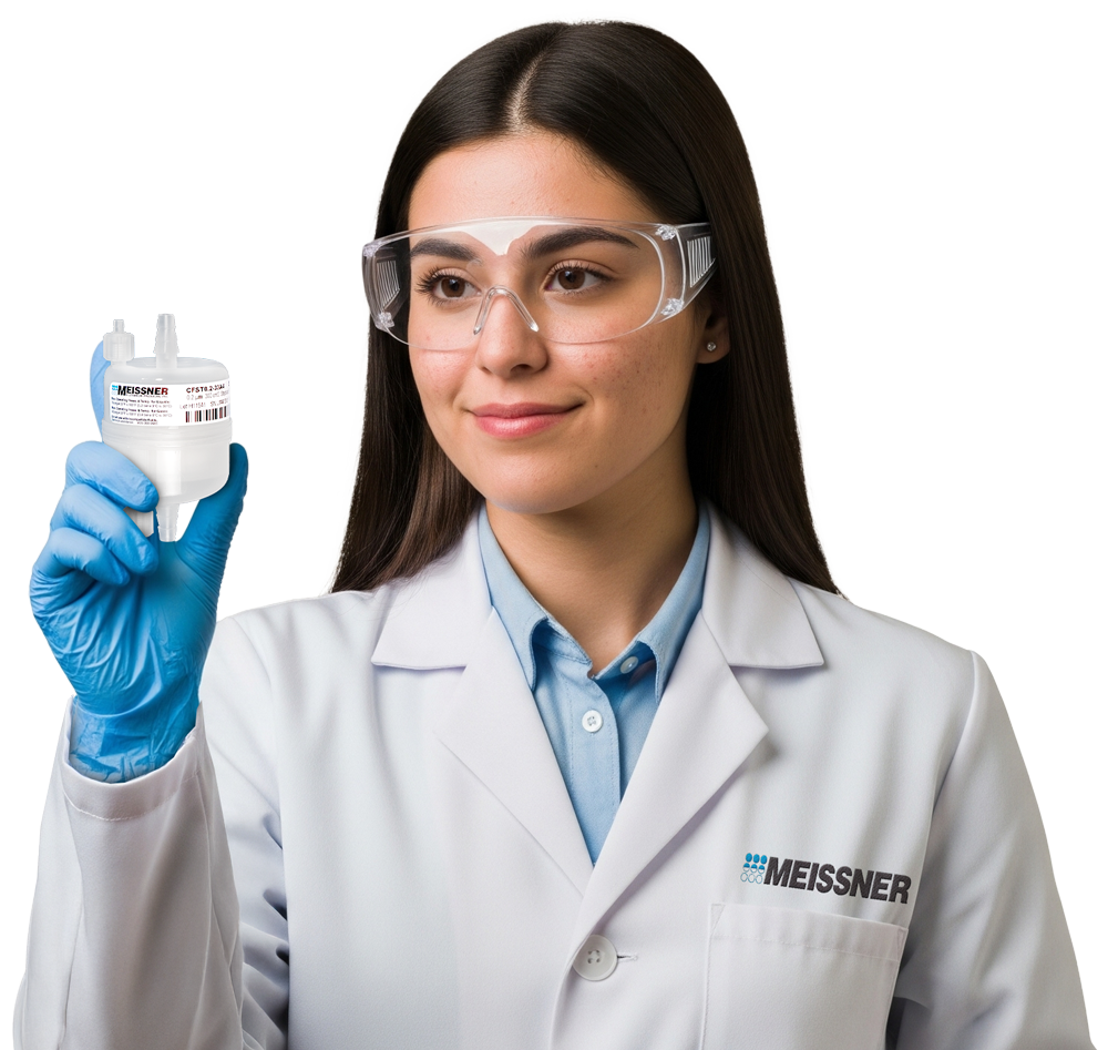 Meissner’s medium capsule filter (CF model) is available with a variety of inlet/outlet connections (hose barb, MNPT, sanitary or TC flange) for maximum flexibility and convenience. The capsule filter provides a nominal filtration area of 0.70 ft.2 (6.50 m2). Available with Meissner’s full range of sterilizing-grade filtration, clarification, purification, and prefiltration media with absolute removal ratings from 0.04 µm to 99 µm.