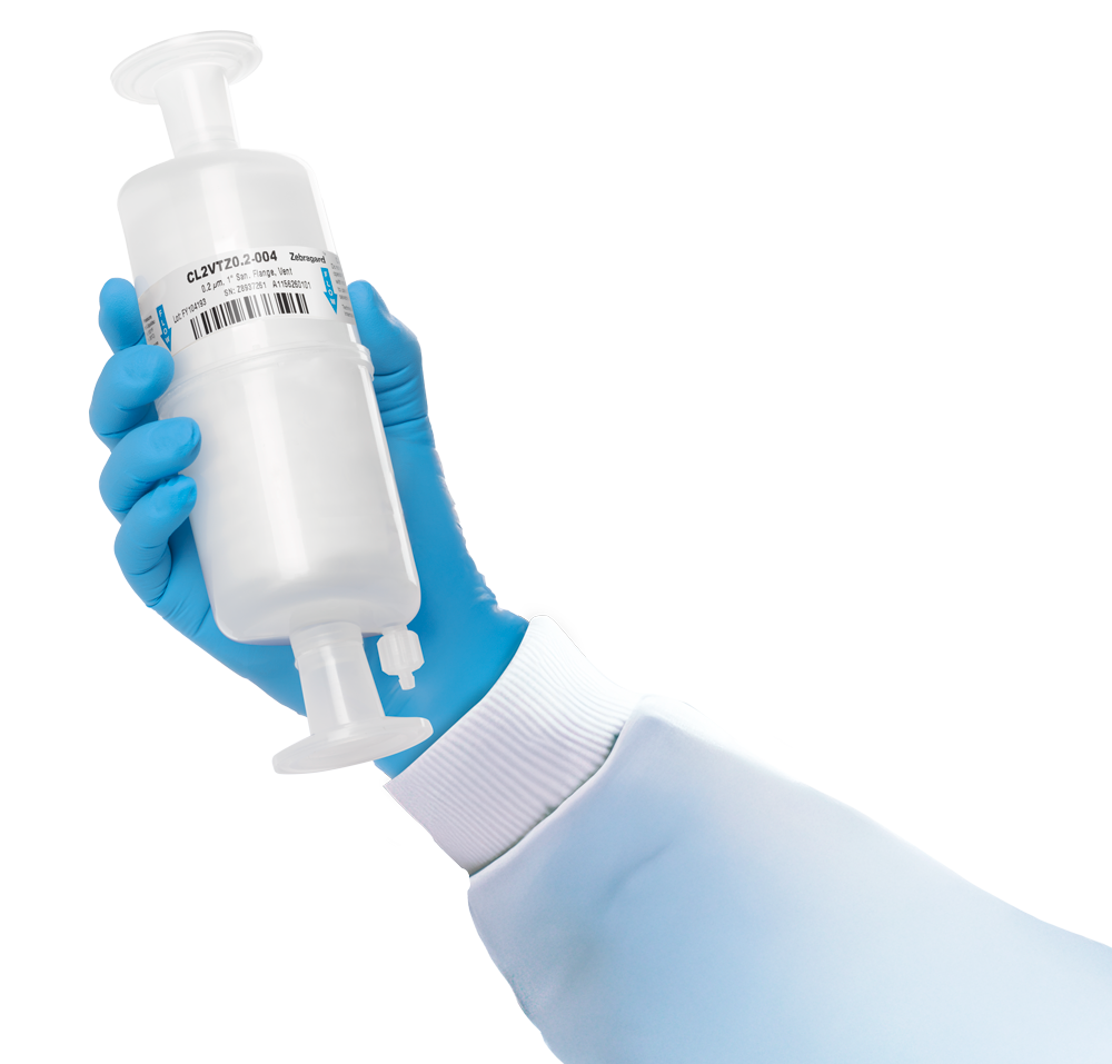A polyvinylidene fluoride (PVDF) membrane filter designed to facilitate inline pre-use, post sterilization integrity testing (PUPSIT) for final fill and finish applications, the Zebragard™ filter offers exceptional flow rates and maximum sterile boundary assurance in single-use systems.
